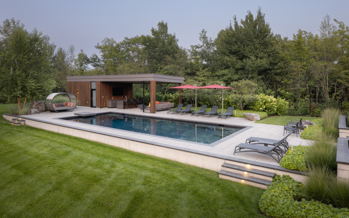 In the mid-to-late 1960s, sunken lounges were everywhere, and we’re loving this new interpretation of a design classic. These conversation spaces have a sleek, elegant feel that can be paired with either a manicured lawn or an English-countryside meadow, depending on your style. Created with stone or fibreglass and accented with plush cushions and textiles, this is a fun, playful take on a gathering spot that can be accented with a fire pit for year-round enjoyment, or a water feature for a more soothing, contemplative space.