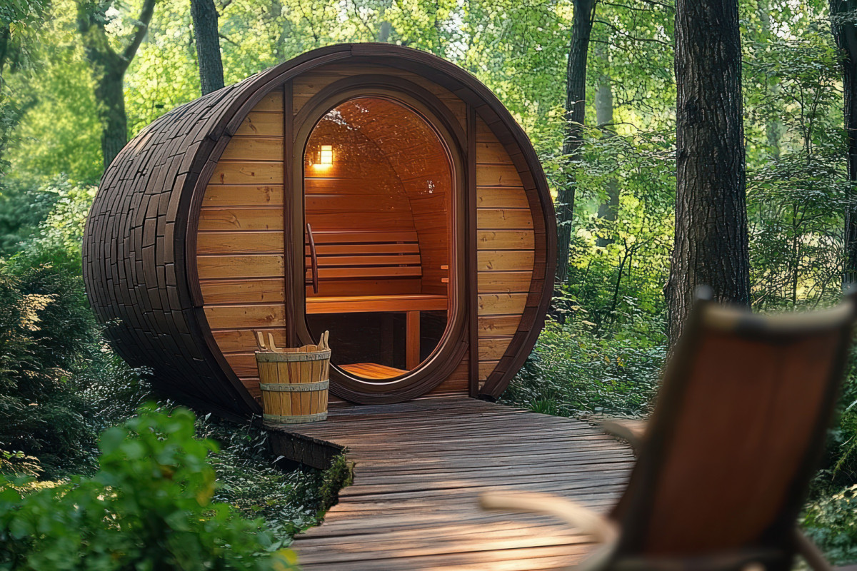 For an investment that yields physical and mental benefits, you can’t beat an outdoor sauna. Generally, there are two kinds: traditional and infrared. You’re probably familiar with the traditional sauna—it’s made of wood and uses a stove to heat sauna rocks, which in turn heats the air in the sauna, which (you guessed it!) heats you. The infrared sauna works a bit differently: it’s also made of wood, but instead of a stove, it uses infrared lamps that emit electromagnetic radiation to heat the body directly, allowing for deeper muscle and joint relief with less ambient heat.