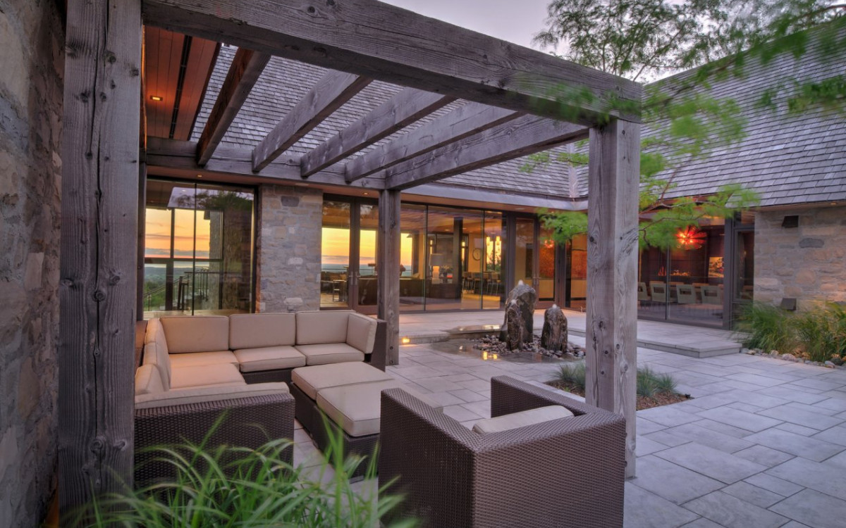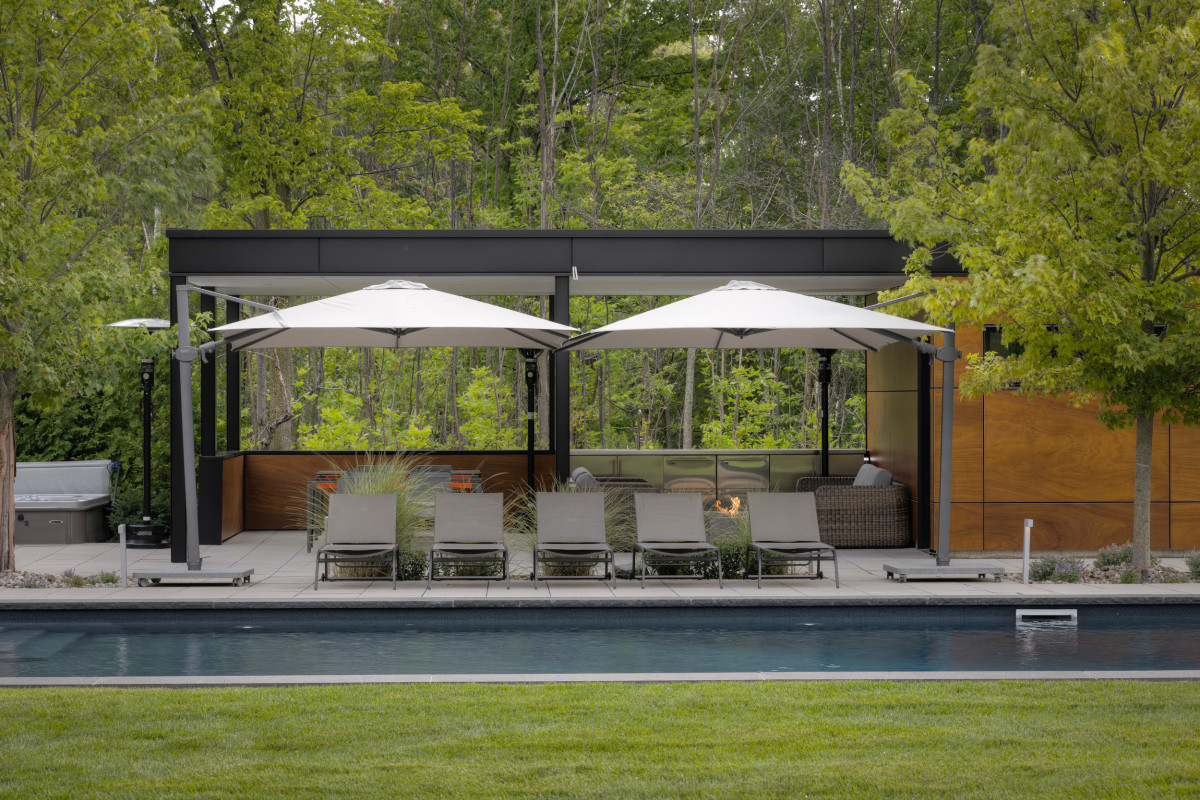 It’s the ultimate in luxury upgrades, since it allows you to take advantage of our beautiful northern landscape without sacrificing comfort. The versatile nature of the design makes it a perfect addition to an outdoor kitchen, wellness retreat, or poolside living room, adding grandeur without ostentation and functionality without sacrificing form. If you have an outdoor kitchen, request built-in screens to allow for air movement and heat-retention. If you’re looking to use your outdoor spa year-round, have weatherproof louvered slats installed to protect your sauna or hot tub from the elements. When summer comes, pre-installed fans can circulate air and protect entertainment equipment from sun degradation. Discreet smart technology allows you to control all features from a manufacturer-specific app installed on your phone, so mechanics are protected from direct exposure and the structure maintains its formal elegance. Weatherproof materials maintain the stylish atmosphere and discreet ambience while allowing year-round outdoor comfort.